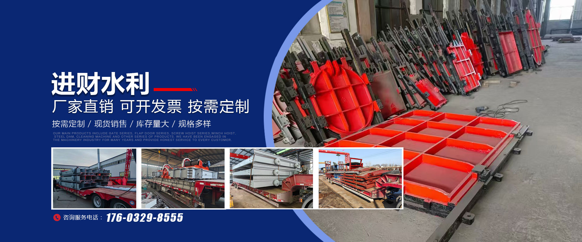 进财水利 · 产品中心主营产品有闸门系列、拍门系列、螺杆启闭机系列、卷扬式启闭机、钢坝、清污机等系列产品,我们从事机械行业多年,诚信服务每一位客户。